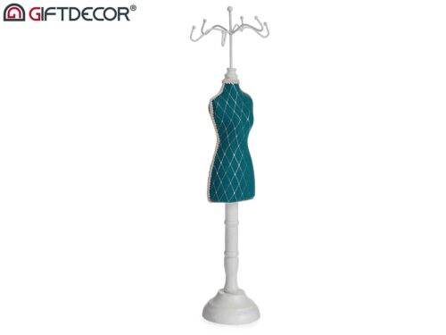 Porta joias verde pe madeira branco dec losangos