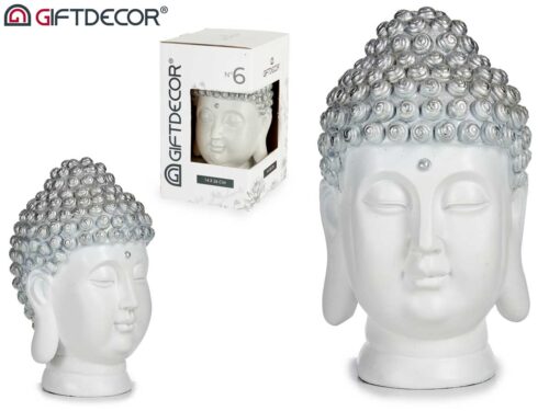 Cabeça de buda resina branco-prateado