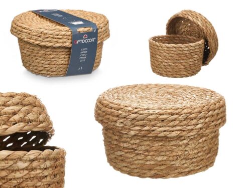 Cesto tampa redondo med natural