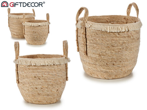 Conj 2 cabazes palha redondos bicolor