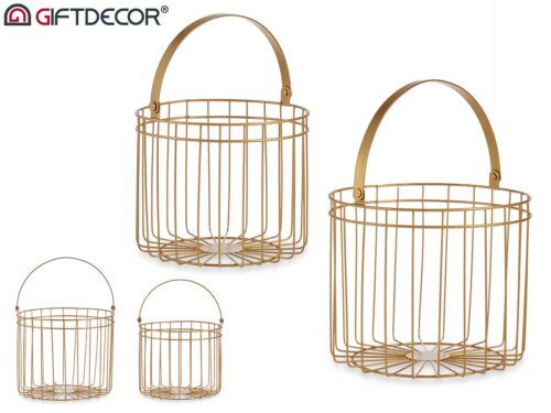 Conj 2 cestas cilíndricas douradas