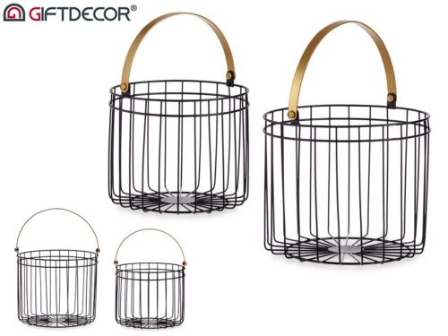 Cesto metálico preto com pegas