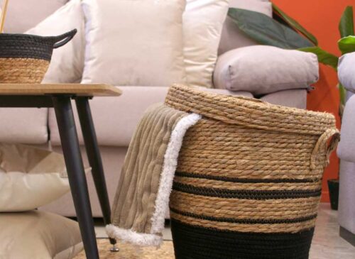 Cesto junco marinho 30cm natural e preto