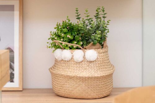 Cesto junco marinho 35cm natural c pompom