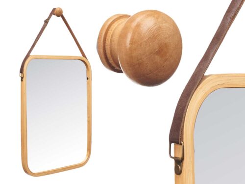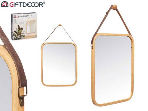 Espelho bambu retangular 41x33cm asa em couro