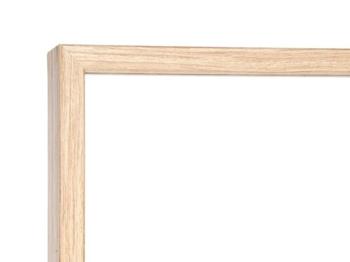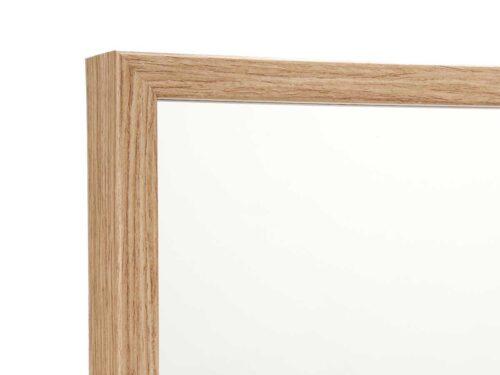Espelho de pé com acabamento em madeira clara