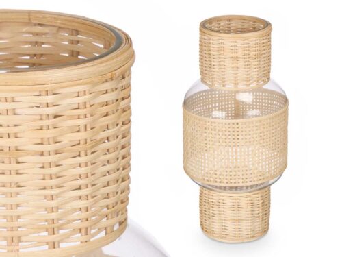 Suporte vela vidro e rattan peq