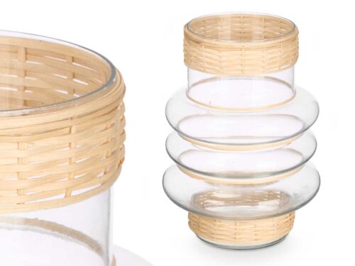 Suporte vela alto cilindrico vidro e rattan