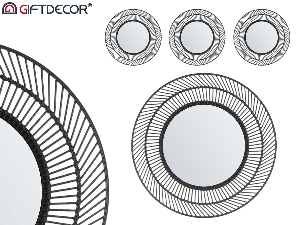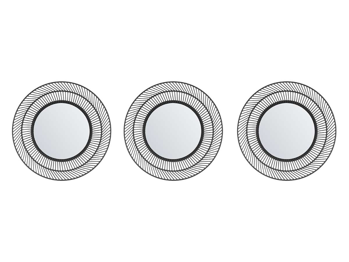Conj 3 espelhos plastico redondo preto