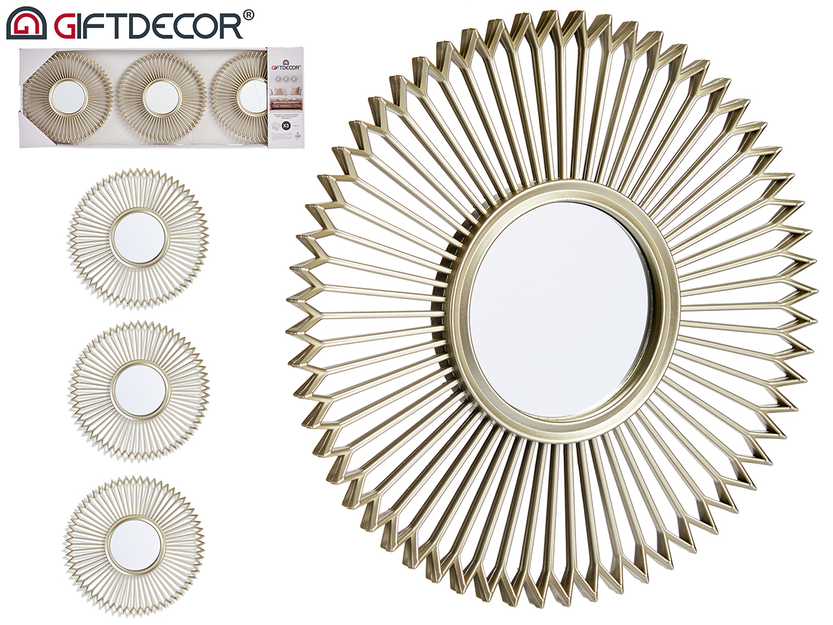 Conj 3 espelhos redondoscor champanhe 25cm