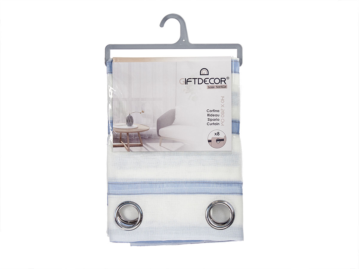 Cortina visillo com riscas azul 140×260 cm
