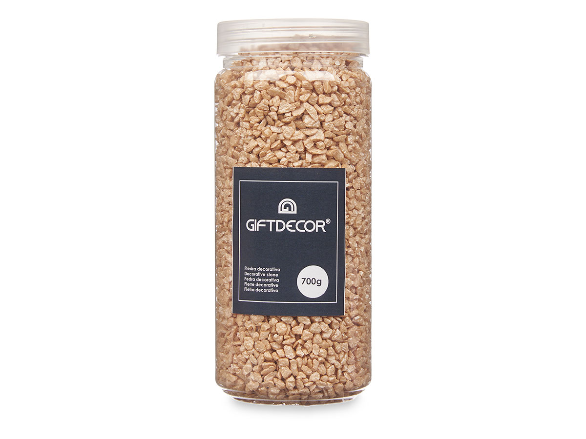 Portada » Tienda » Pedras decorativas metaliz 2 5 mm 700g beges