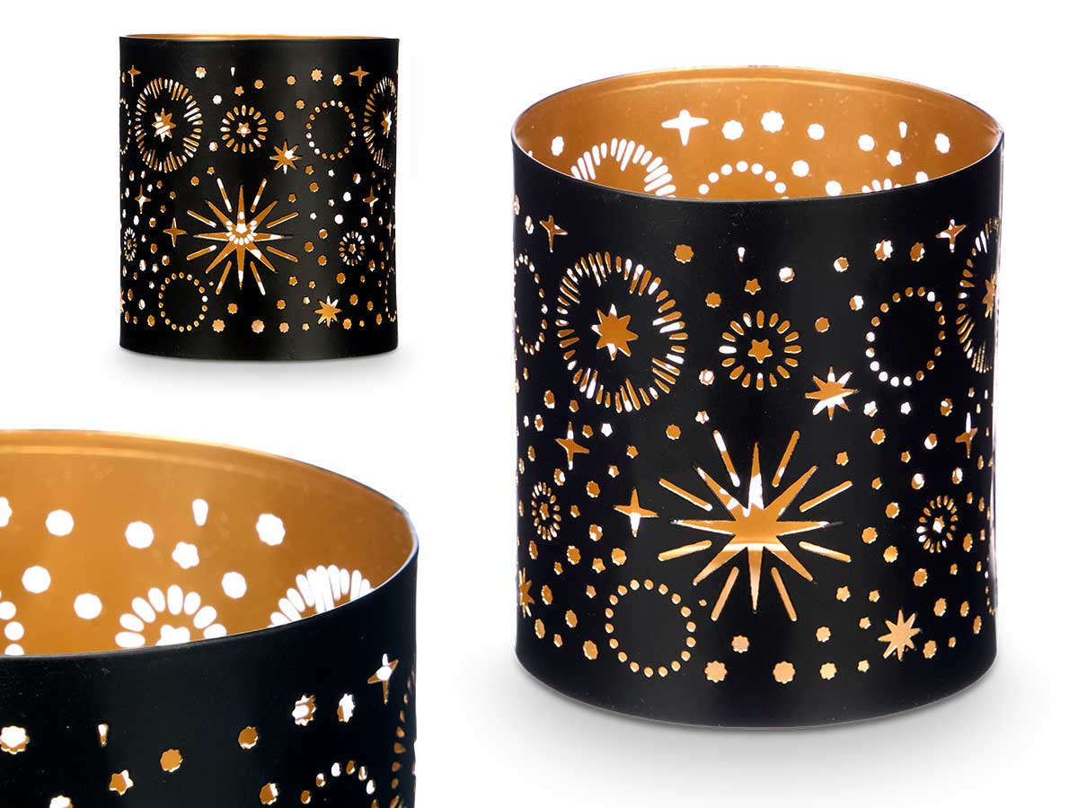 Suporte vela preto e dourado estrelas