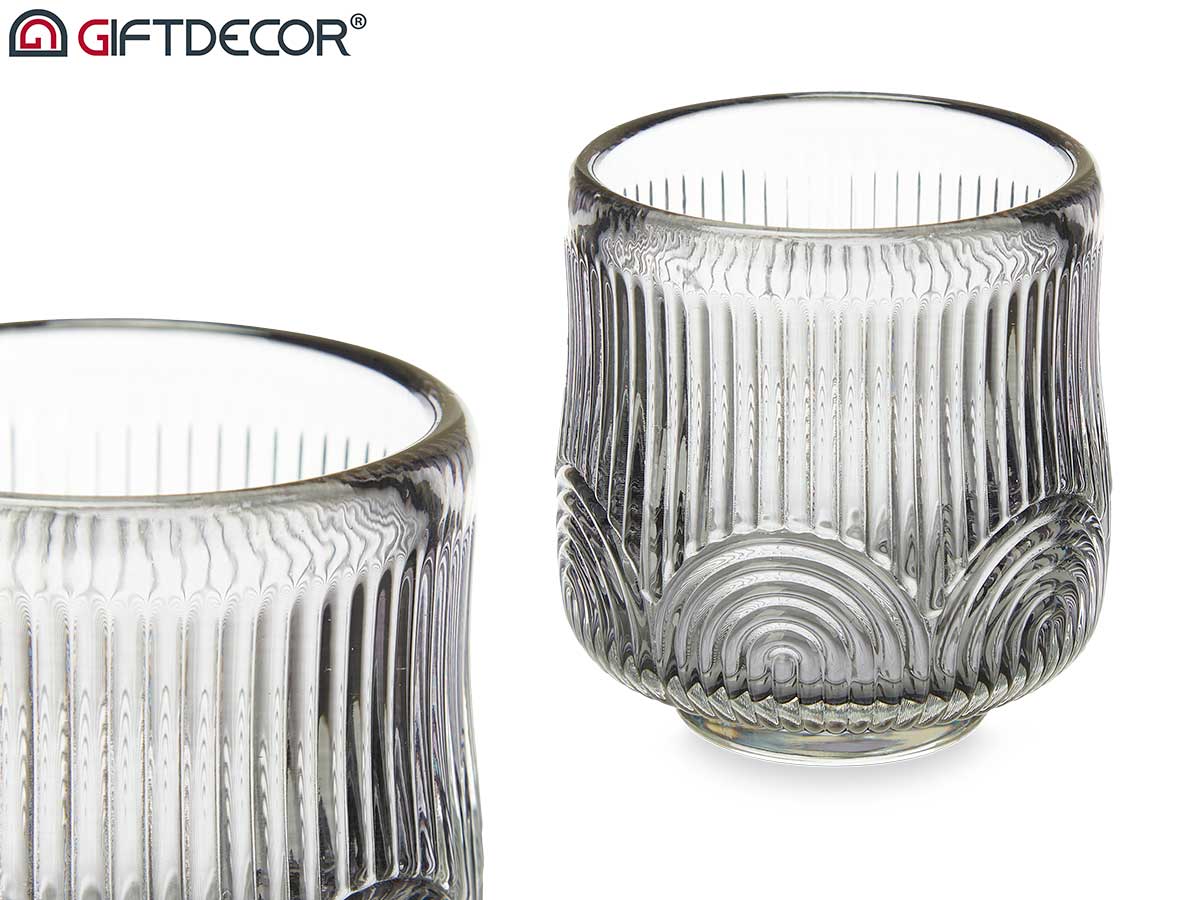 Suporte velas riscas peq cinzento