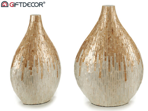 Jarron ancho nacar plata 38cm